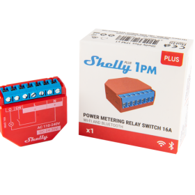 Shelly Plus 1PM è un relè smart compatto con misuratore di potenza integrato, progettato per il controllo remoto di luci, elettrodomestici e carichi elettrici fino a 16A (3840W).